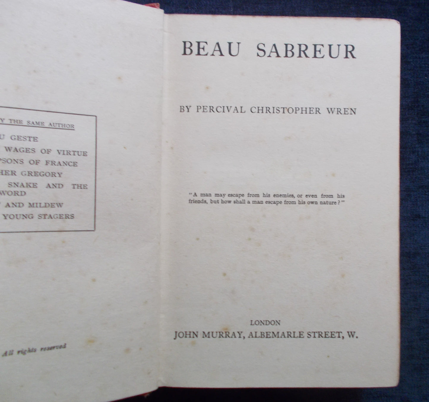 The sequel to Beau Geste: the ripping adventures of Major Henri de Beaujolais from adolescence to maturity as a well-connected cavalry officer in the French Army: he's an Old Etonian; his mother a Devonshire Cary; his deceased father a Frenchman; his paternal uncle the youngest General in the French Army and married to the sister of the French Minister of State for War. Starting as a one-year volunteer trooper in a hussar regiment, De Beaujolais graduates from the Cavalry School of Saumur to become an officer of Spahis and a member of the French Secret Service. The Major faces the struggle between love for his country and the love of a woman. Highly romantic - but it was published in 1926! Regarded as the 'French' novel of the Beau series with Beau Geste as the English novel and Beau Ideal as the American novel.