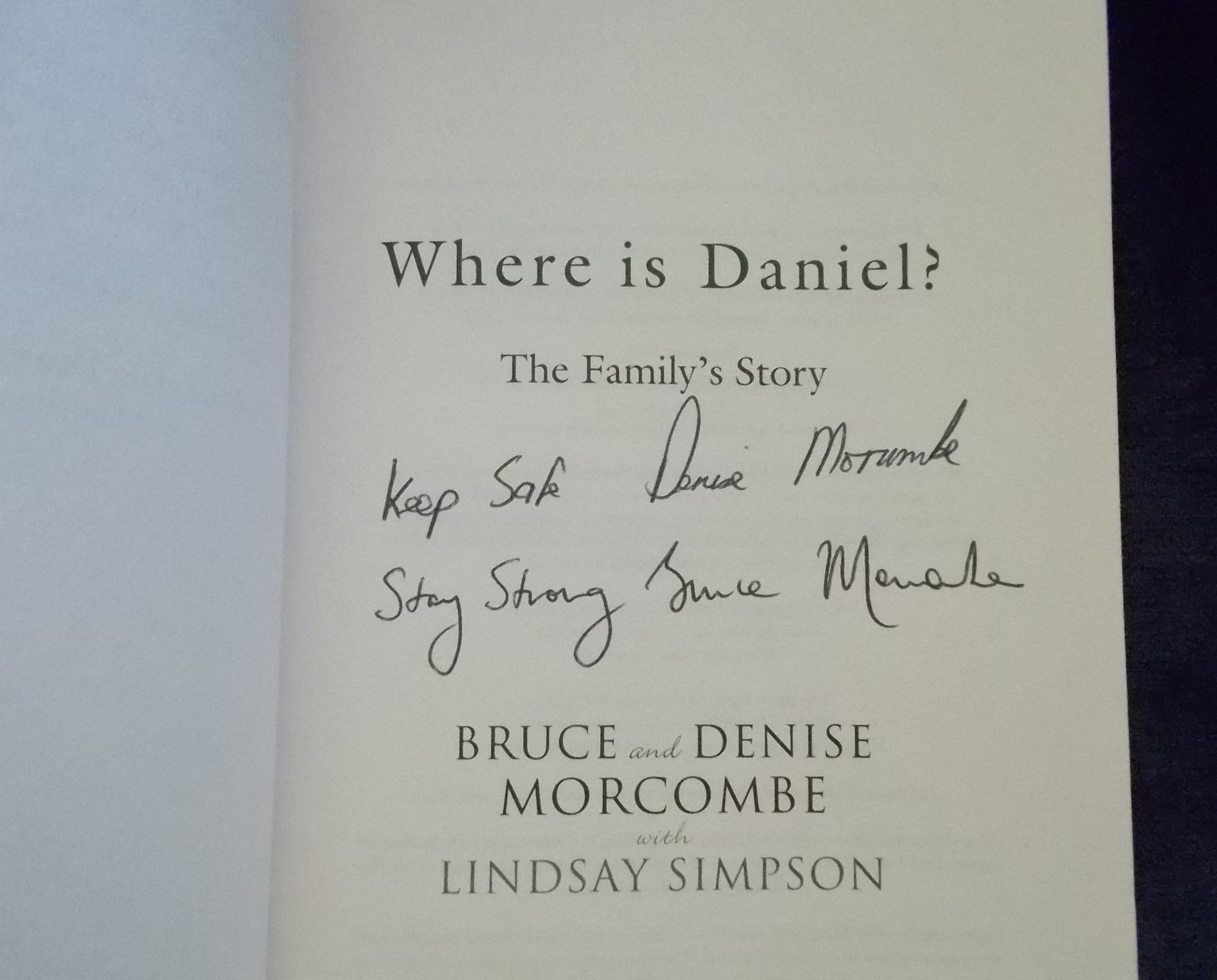 We will never give up. As the nightmare of hours became days then weeks, and months and years, the family mobilised to become the moral force behind the longest criminal investigation in Australia's history. This book covers the decade-long investigation into the disappearance of Daniel and the extraordinary courage, dignity, persistence and fortitude Bruce and Denise displayed under unbearable circumstances. This determination also applied to Bruce and Denise's desire to mine something positive from the darkest of experiences. They started the Daniel Morcombe Foundation in 2005, to teach children about safety, and have since visited hundreds of schools around Australia. They've established Australia's largest annual child safety day-of-action, Day for Daniel, and utilised the funds raised to support other children who have been the victims of abuse. Photographic illustrations. Autographed by Daniel's parents, Bruce and Denise Morcombe.